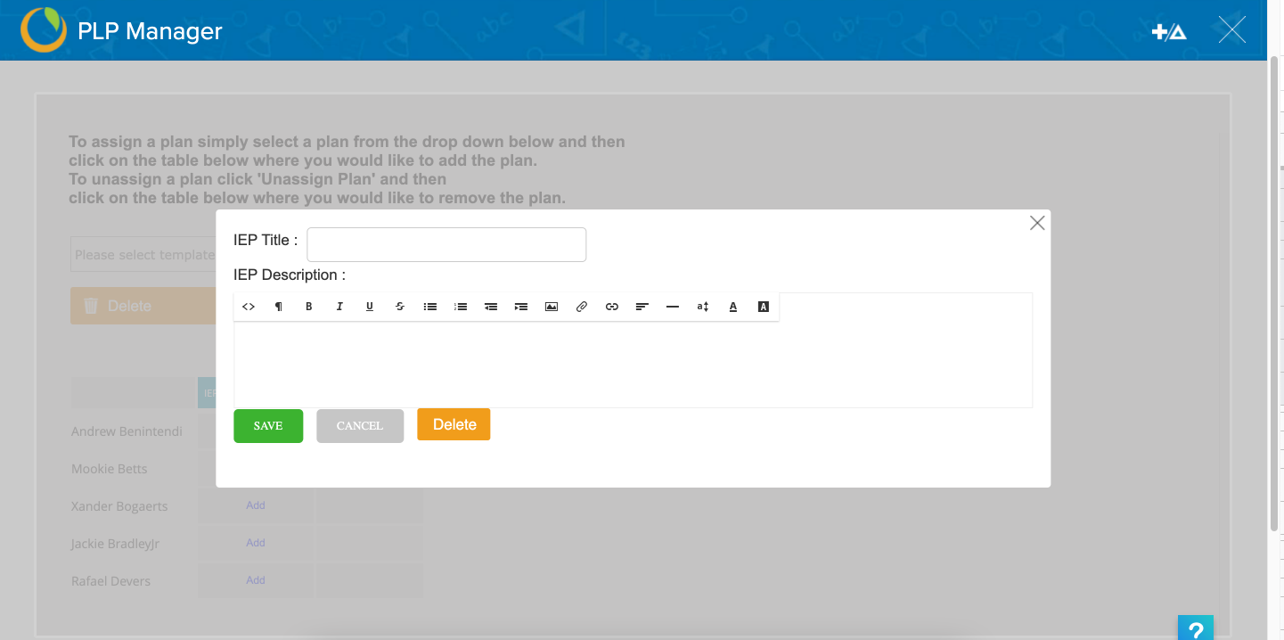 IEPs are similar in Empower, but are used for informational purposes only, whereas PLPs adjust the expectations within Empower. To enter IEPs for learners, start with the PLP manager.